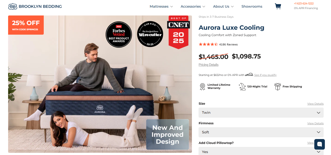 2. Brooklyn Bedding Aurora Luxe: Best Mattress for Hot-Sleeping Couples: