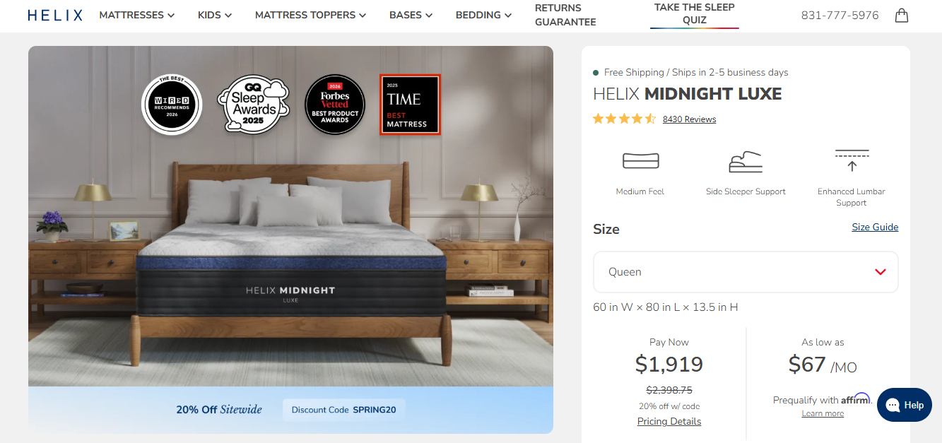 1. Helix Midnight Luxe: Best Overall